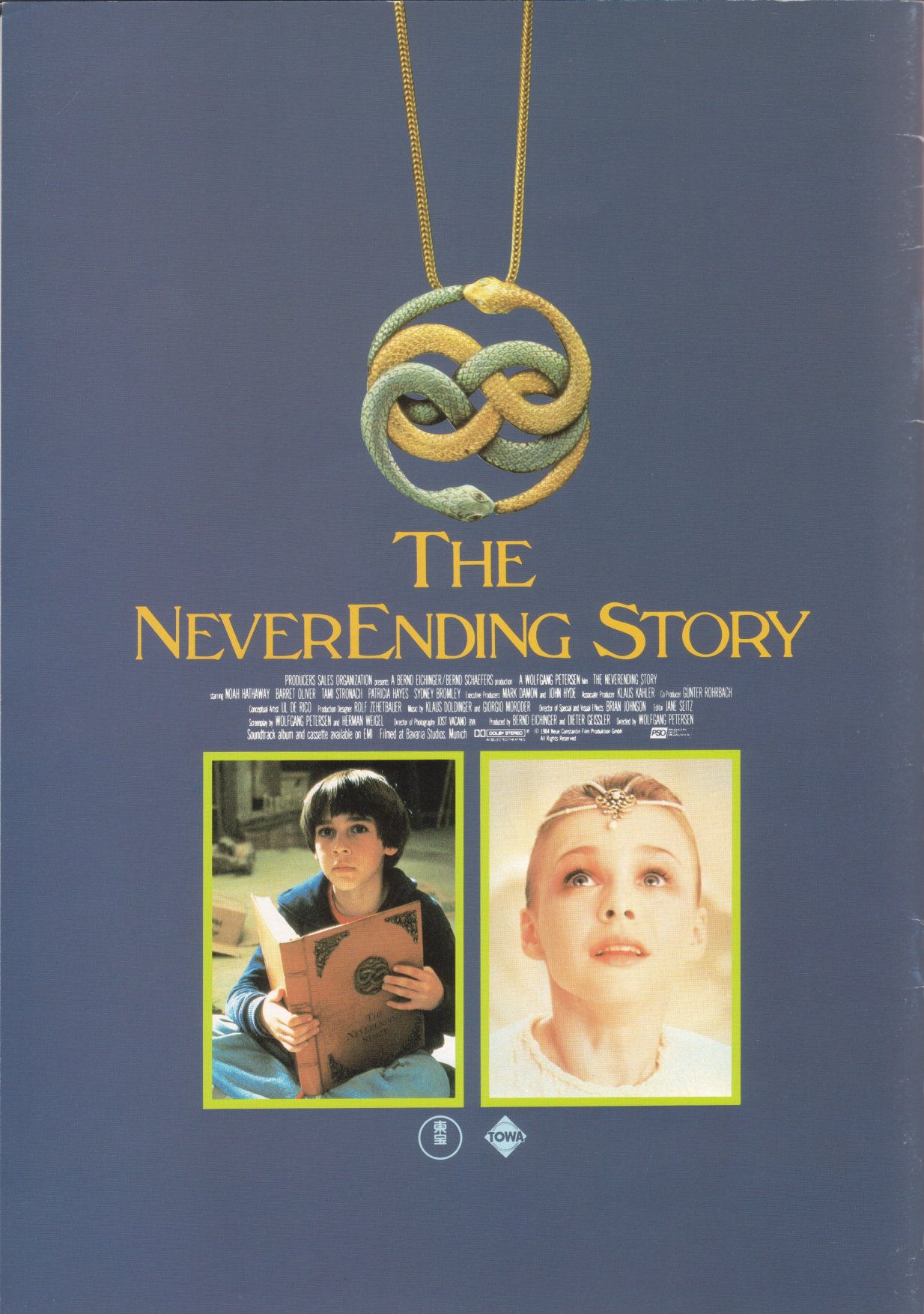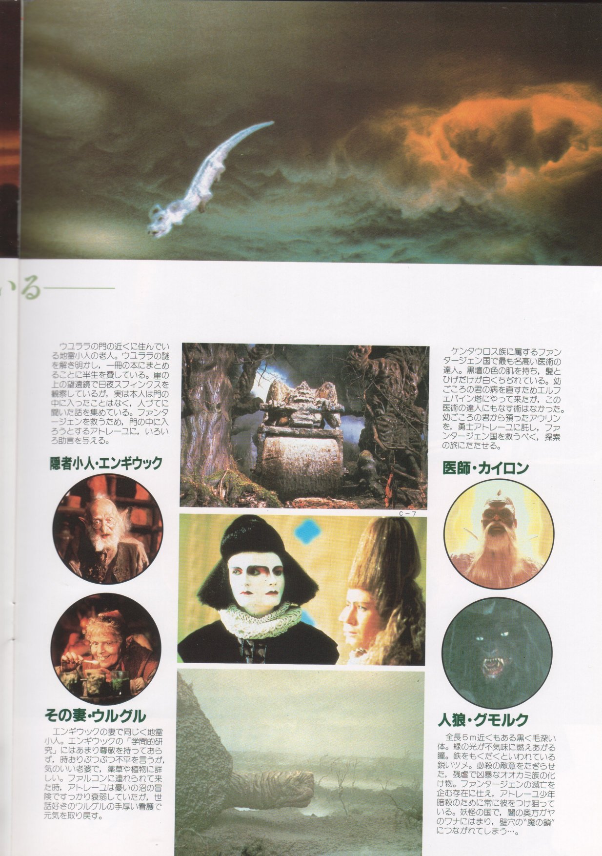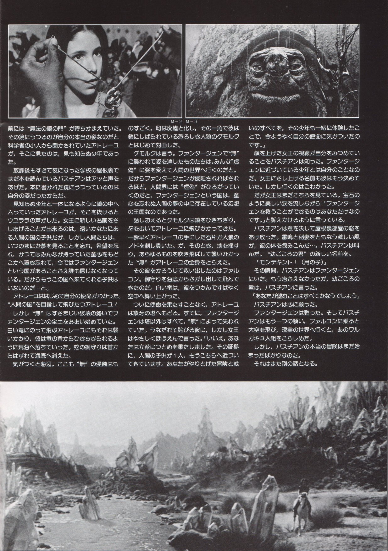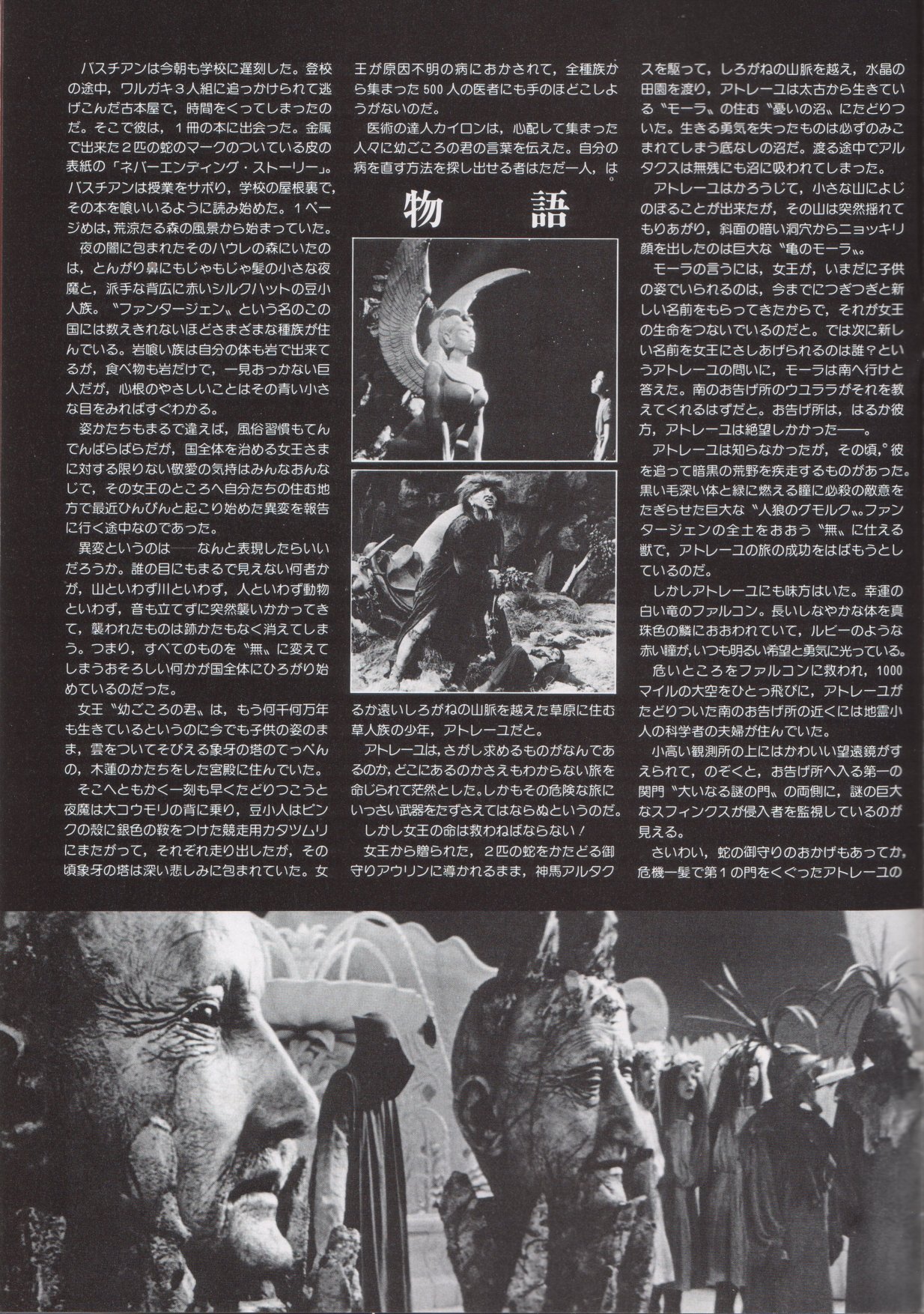This is a Japanese movie program for THE NEVERENDING STORY. It measures 8.5" by 11", is printed on HEAVY STOCK paper and is CHOCK FULL OF BEAUTIFUL COLOR PICS! When movies are released theatrically in Japan, souvenir programs are sold at the theater. The programs are like magazines which feature color pictures as well as b&w photos, and lots of accompanying text (mostly in Japanese). This THE NEVERENDING STORY movie program has 28 pages, of which approximately 65% of the pages are in color. There are over 60 dazzling photos in all. Thanx for the images to Marco.