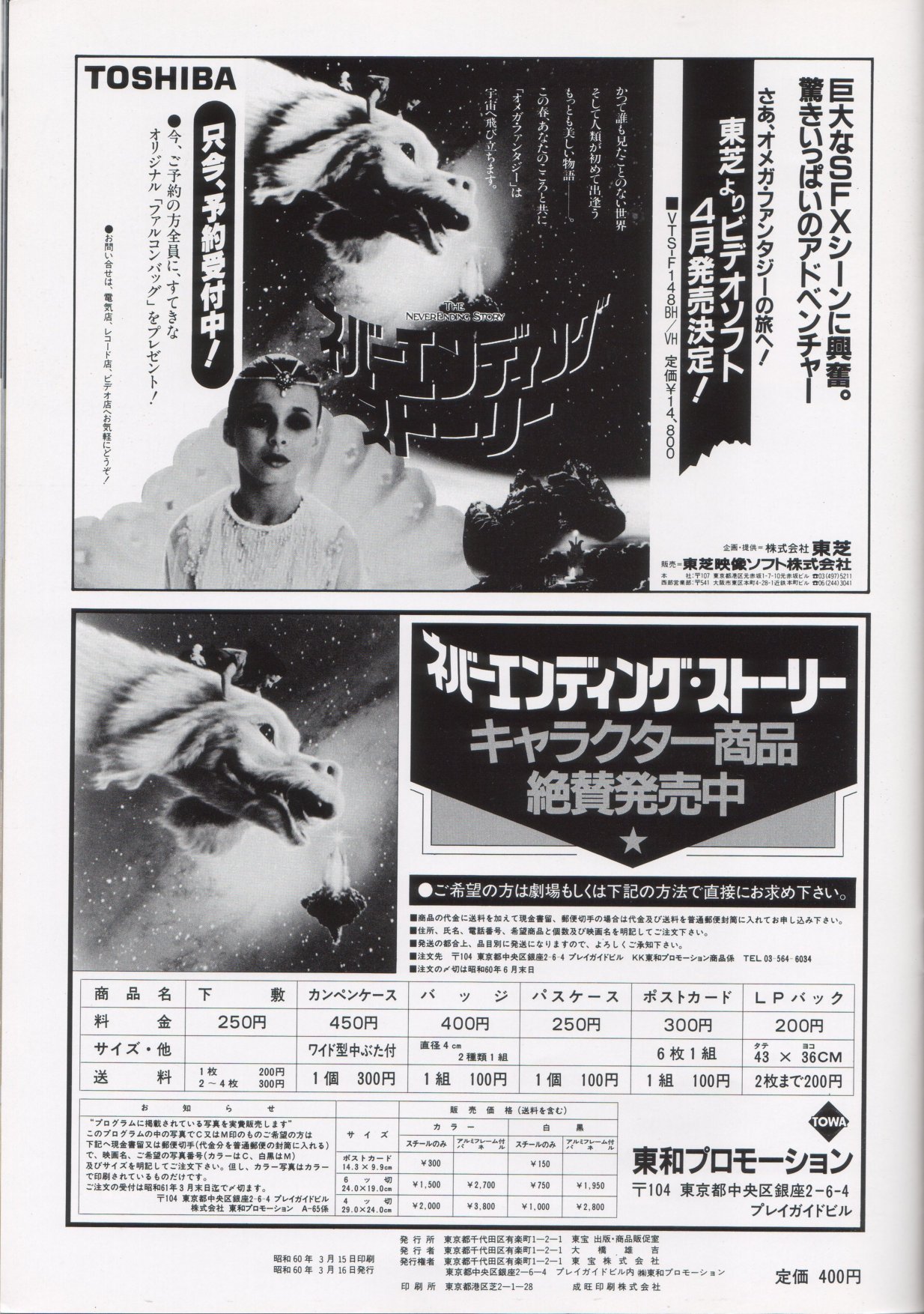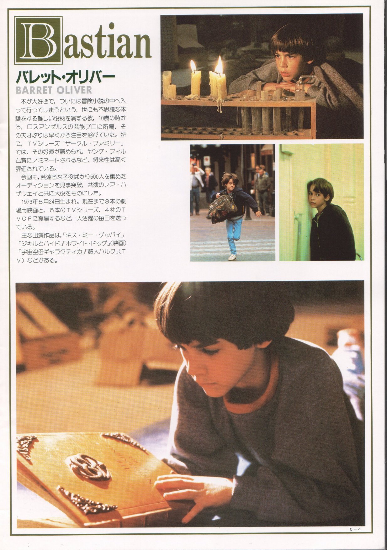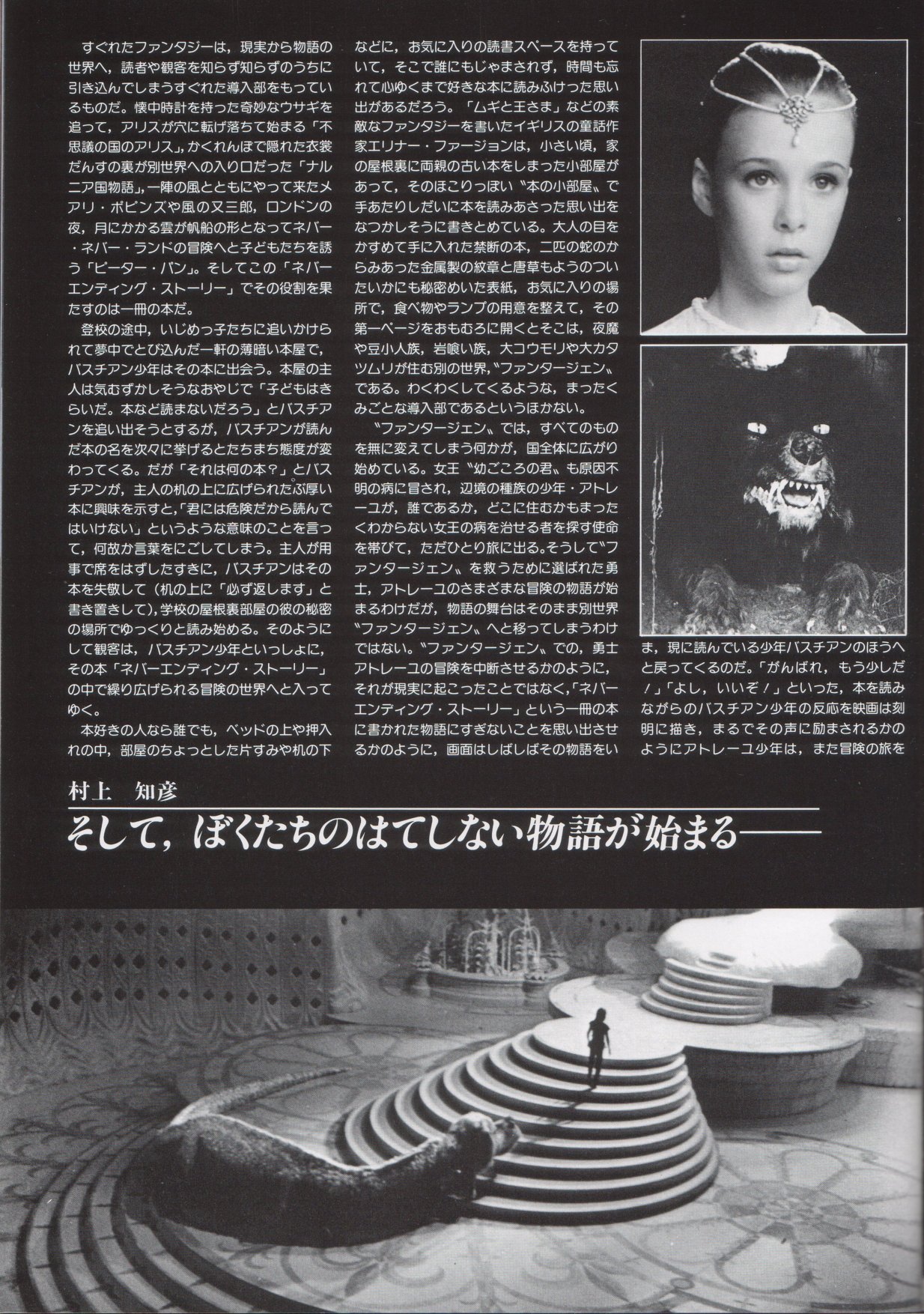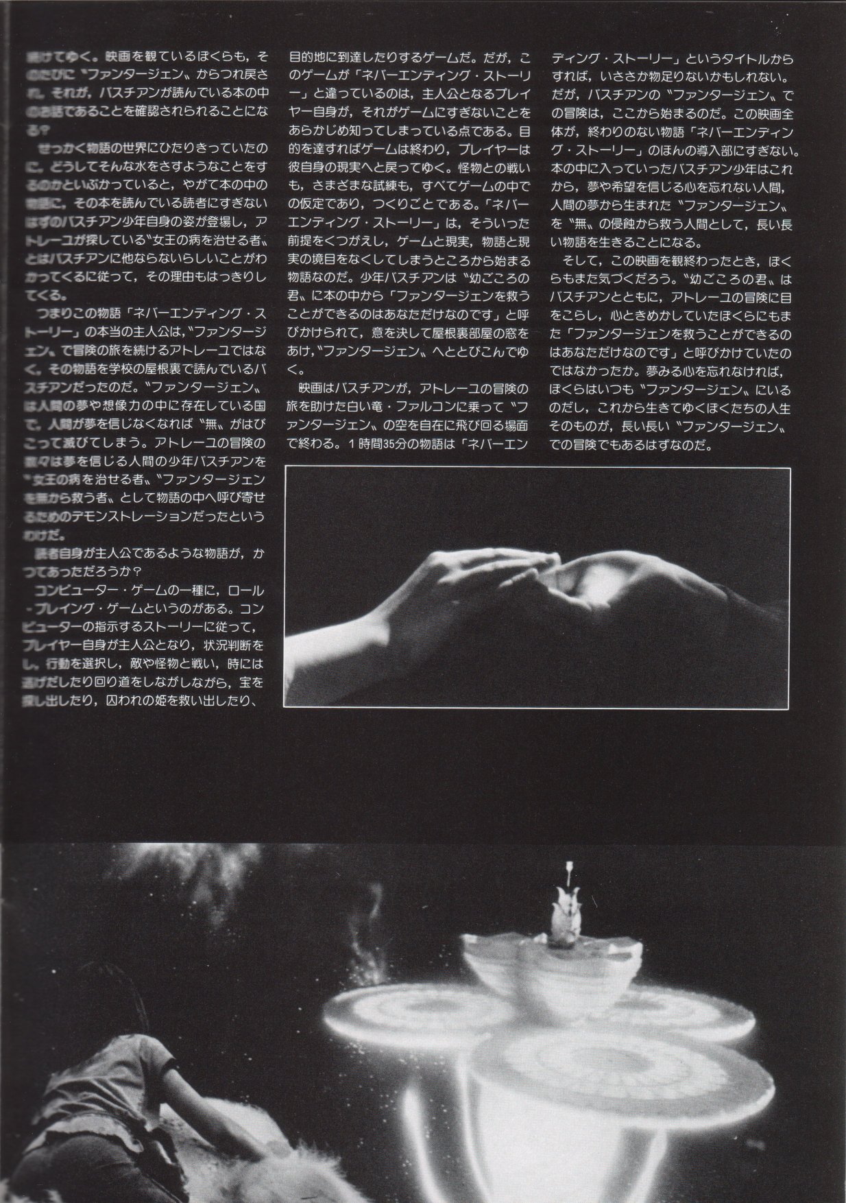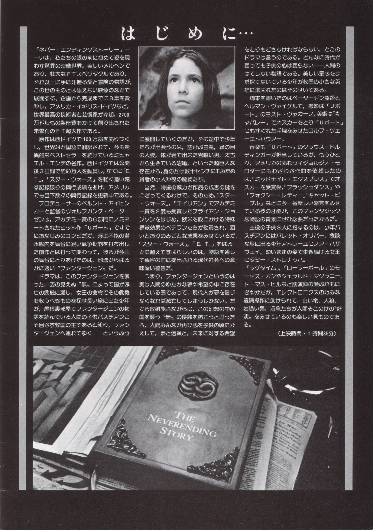 This is a Japanese movie program for THE NEVERENDING STORY. It measures 8.5" by 11", is printed on HEAVY STOCK paper and is CHOCK FULL OF BEAUTIFUL COLOR PICS! When movies are released theatrically in Japan, souvenir programs are sold at the theater. The programs are like magazines which feature color pictures as well as b&w photos, and lots of accompanying text (mostly in Japanese). This THE NEVERENDING STORY movie program has 28 pages, of which approximately 65% of the pages are in color. There are over 60 dazzling photos in all. Thanx for the images to Marco.