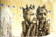 on the set, among them birdmen, giant heads, gnomes, two-faced people and